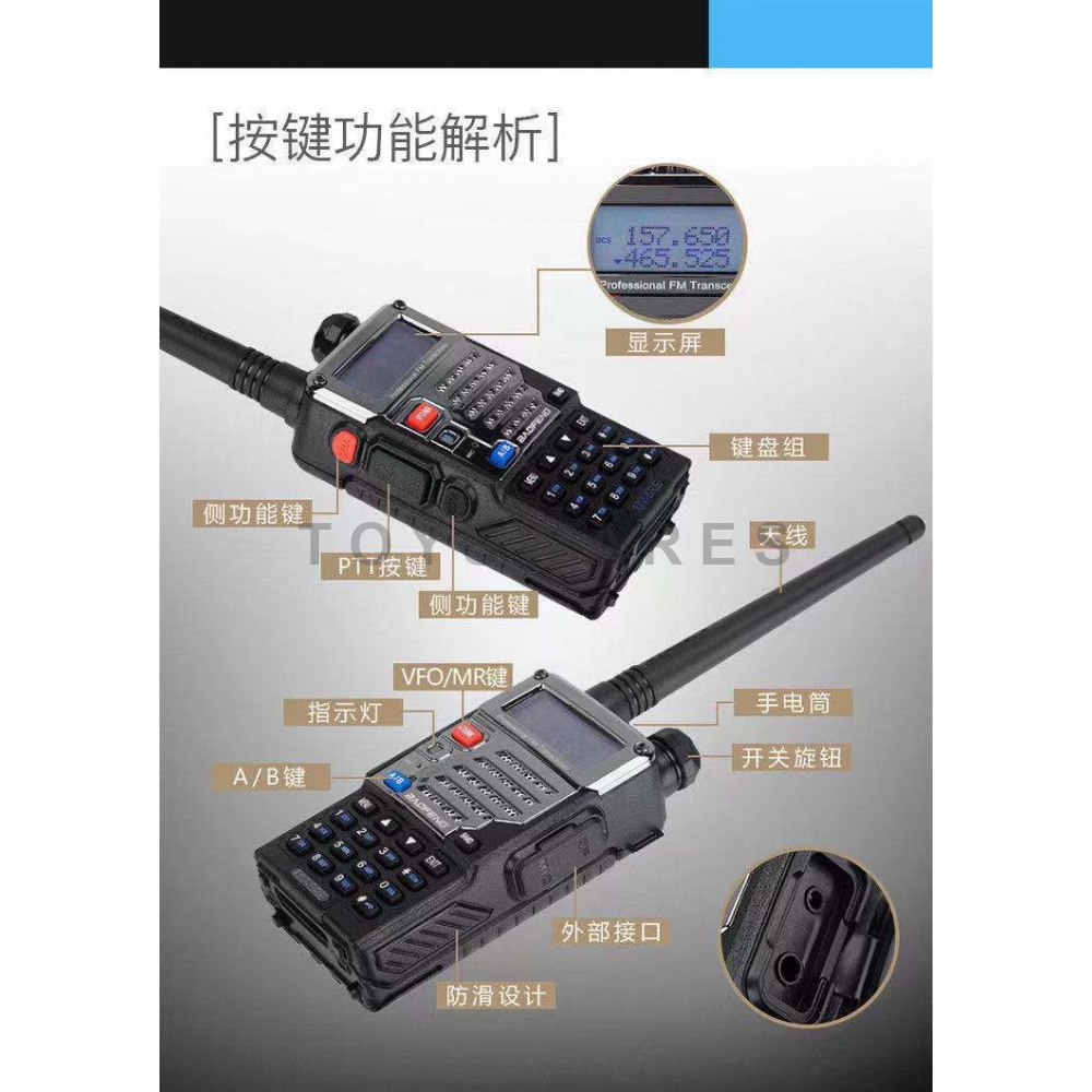 The BaoFeng UV-5RE is a compact handheld radio scanner transceiver providing 5 watts in the frequency range of 136-174/400-480MHz. It is a compact, economical HT that includes a special VHF receive band from 65-108 MHz which includes the regular FM broadcast band. Dual watch and dual reception are supported. ▸ FCC ID: 2AJGM-UV5RE Functions: - VHF & UHF Dual Band • Dual Frequency Display, Dual-Standby • 5W TX Power • FM Radio (65.0MHz-108.0MHz) • - 128 Channels • 50 CTCSS and 104 DCS • 1750Hz Burst Tone • Keypad Lock • Large LCD Display • Emergency Alert • - VOX Function • ROGER Set • High/Low RF Power Switchable • 25KHz/12.5KHz Selectable • Low Battery Alert • - LED Flashlight • Battery Saver • Time-out Timer • Monitor Channel • 2.5/5/6.25/10/12.5/25KHz Selectable Frequency Steps • Specifications.... Type: Portable Professional Frequency Range: 136-174 / 400-520 MHz Frequency stability: ± 2.5ppm Channel Capacity: 128 Channel Spacing: 25kHz-Wide/12.5kHz-Narrow Battery: 1800mAh Li-ion Output TX Power: 8W-High/2W-Low Operating voltage: DC 7.4V Operating Hour: About 8 hours Operating Temperature -30°c-+60°c Antenna impedance: 50Ω Antenna Type: Compatible with SMA-Female Antenna Interface: K-type 2-pin earpiece/programming cable Communication Range: About 5km -1 x Baofeng UV5RE -1 x Antenna -1 x Li-ion battery pack -1 x LI-ion charger -1 x Belt clip -1 x User's manual -1 X Earfone (Free) #baofeng #baofengradio #uv5re #uv-5re #walkie-talkie #2way-radio #transceiver #wholesale #borong #google #original