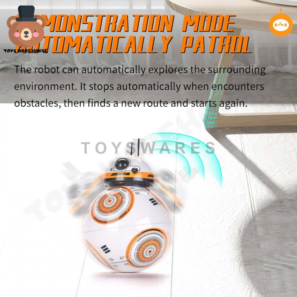 This BB Robot is the magnetism connects the head and body perfectly. The head spinning around the sphere in running or rotation. It's interesting! The sound imitation is set inside the body. Give out the siren, whistle, snore, consultation.
