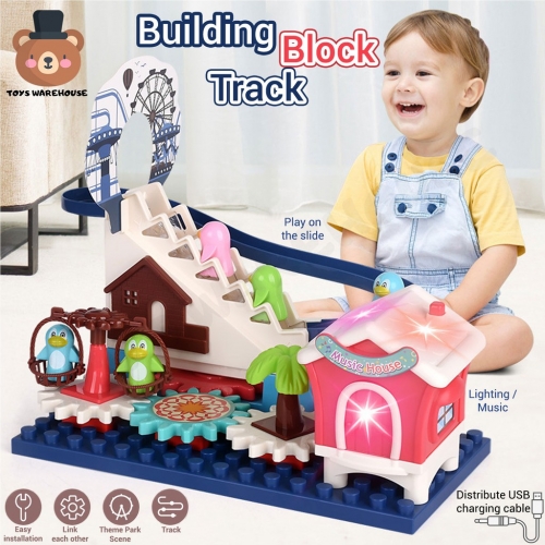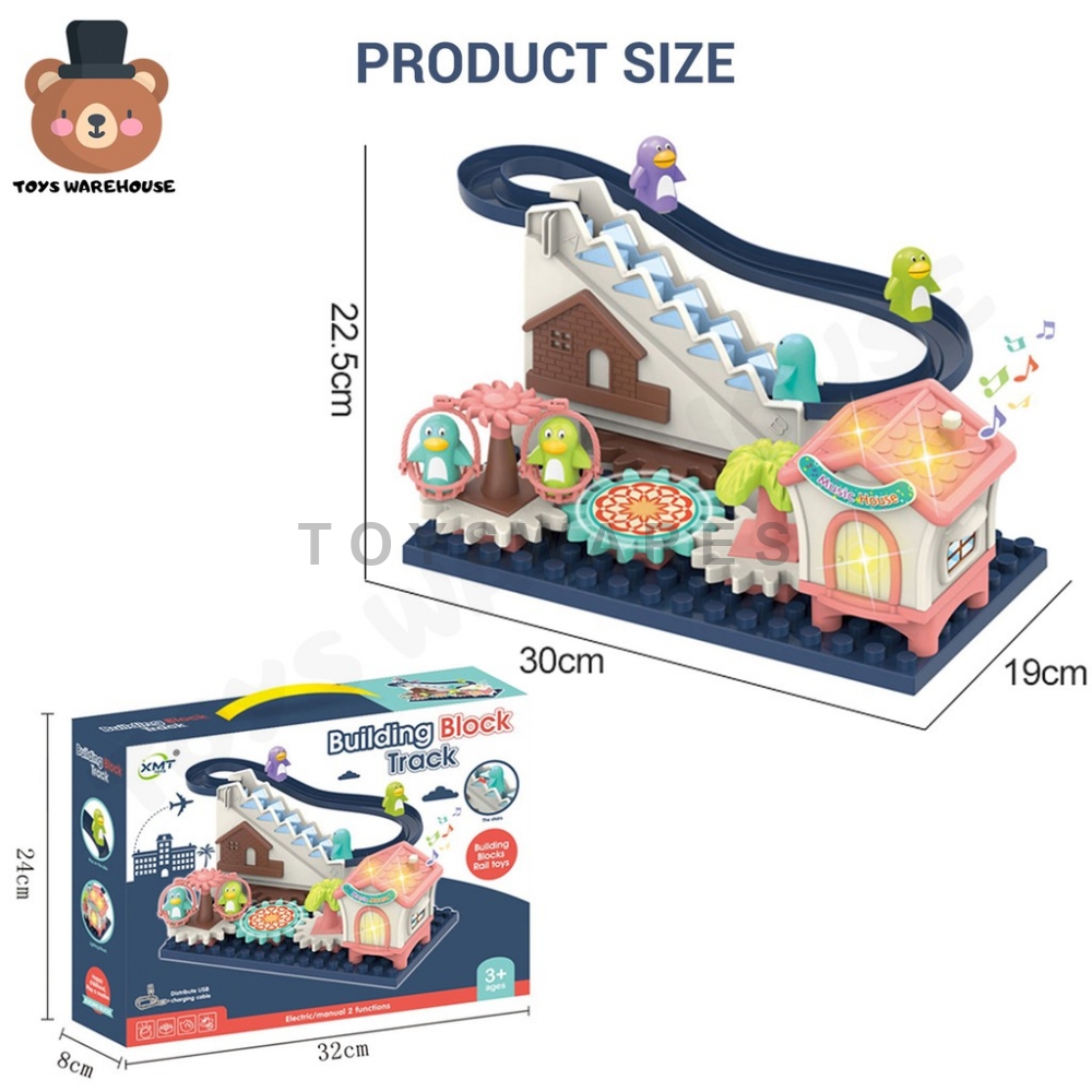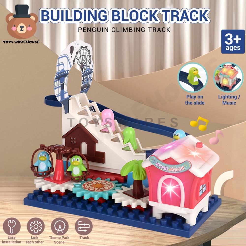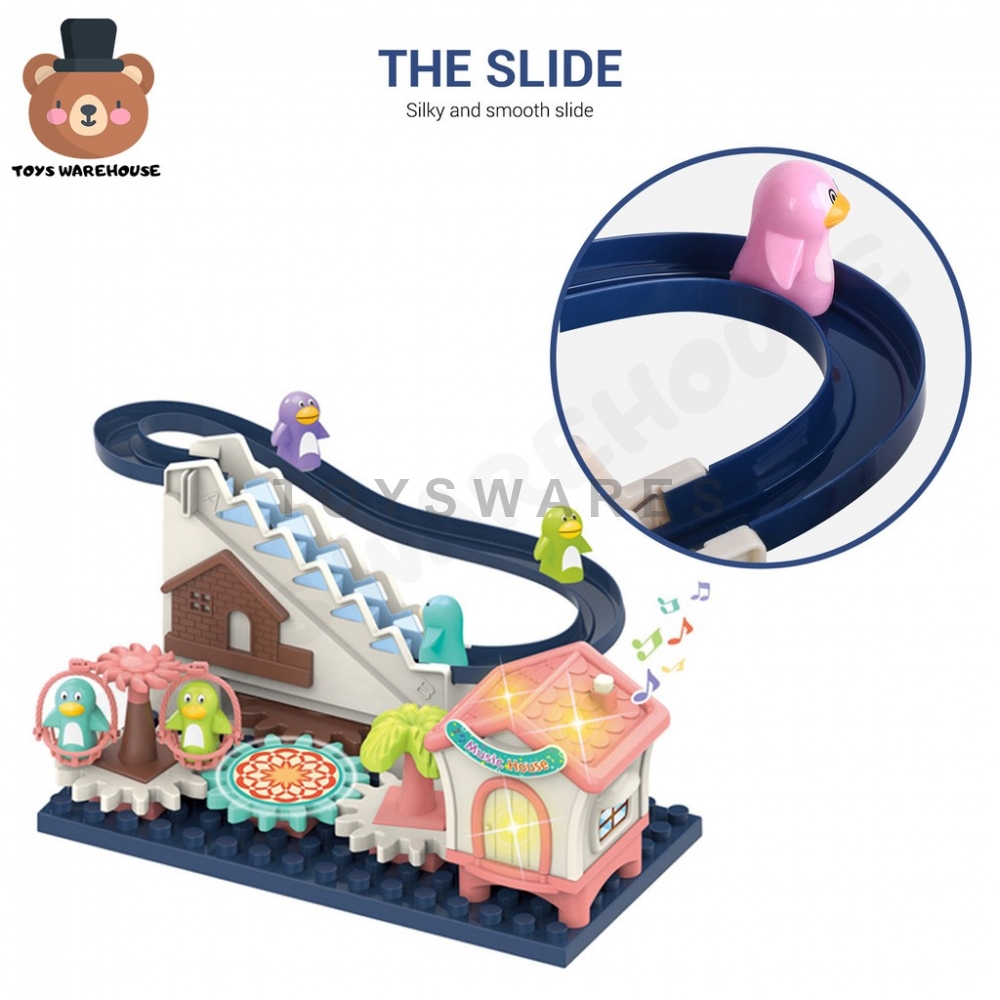 Penguin Track Building Block Climbing Stairs Track Toy For Children with Light & Music