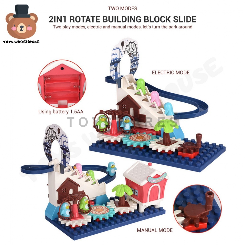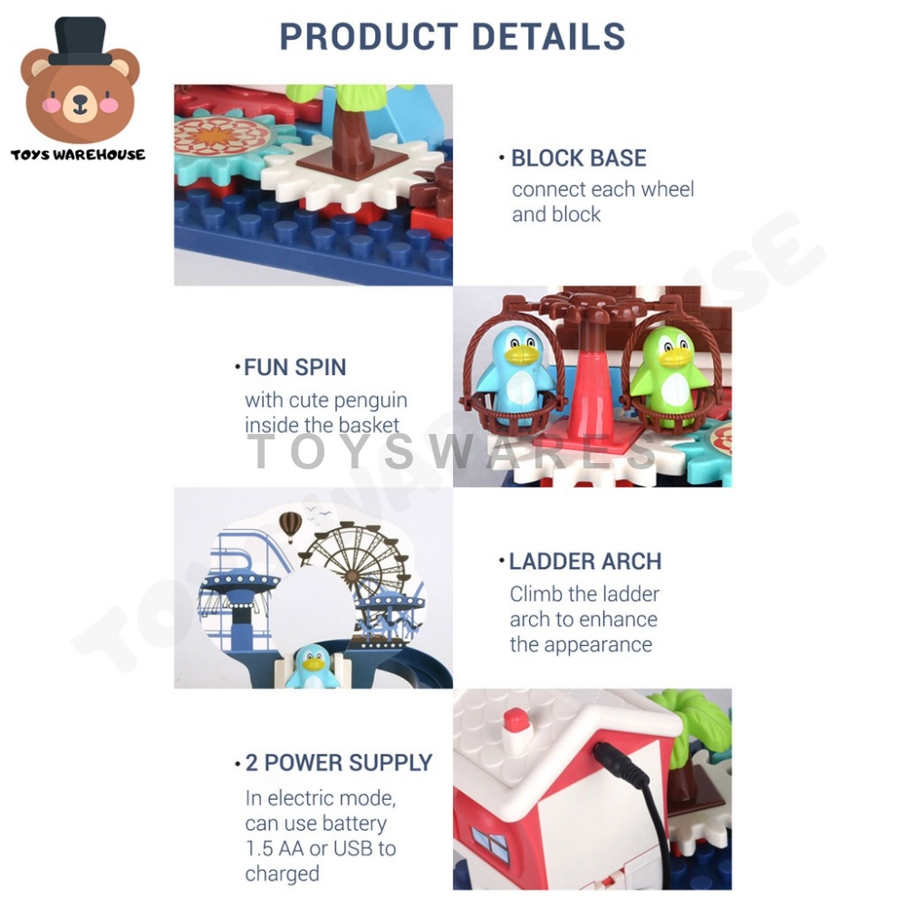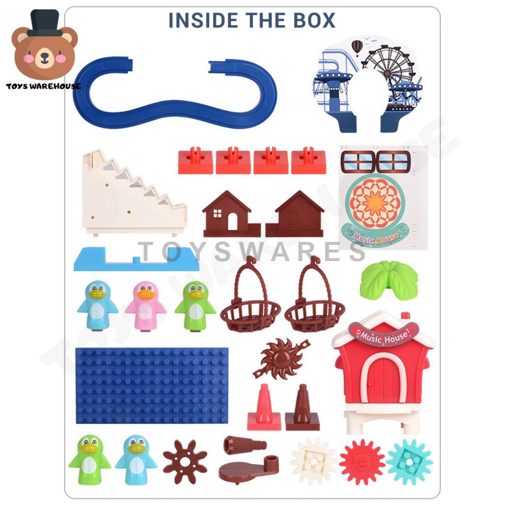 Wondering what is an 'Orbital Track'? An Orbital Track is a battery powered toy that moves the car on its own all over the track in repetition. Just powered it up or do manually and watch as it travels through with its friends. Comes with additional accessories to add more depth and fun to the whole set. With base and more extra penguin! Get one while stock last!