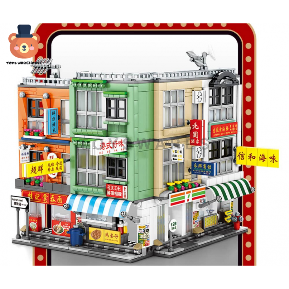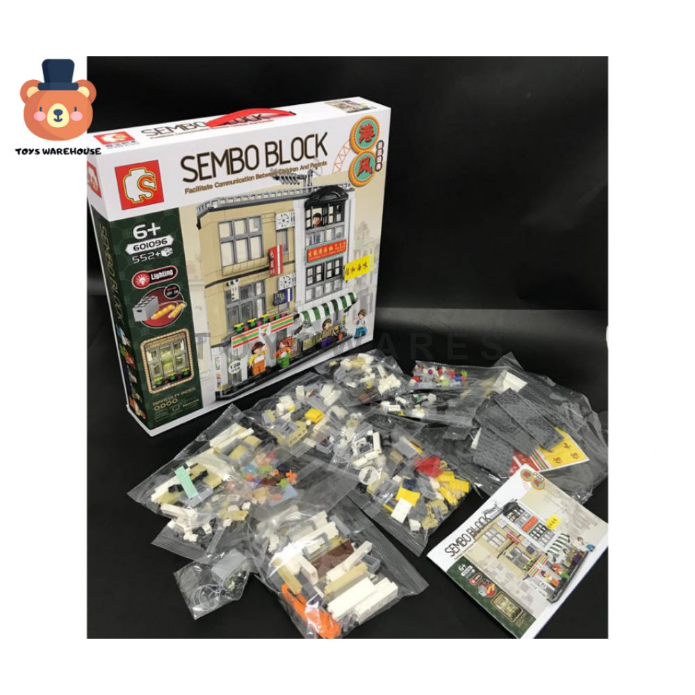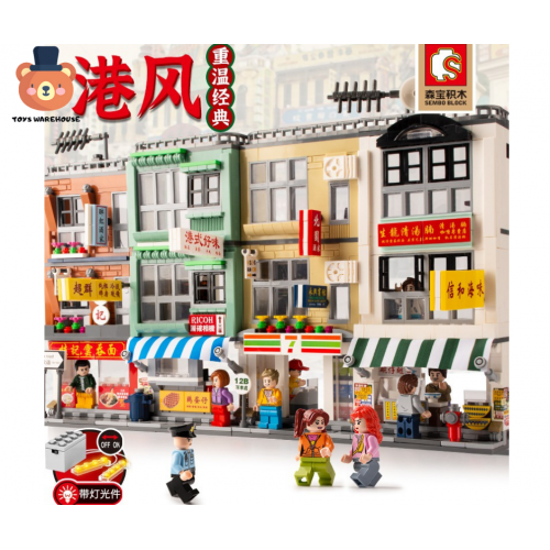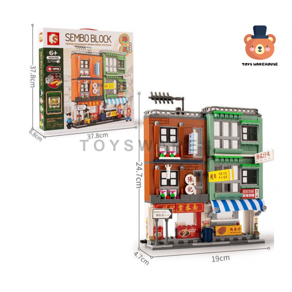 [ READY STOCK ] Sembo Block Hong Kong Style Street Shop Building Blocks With Light 601095-601096 带灯港风积木系列
