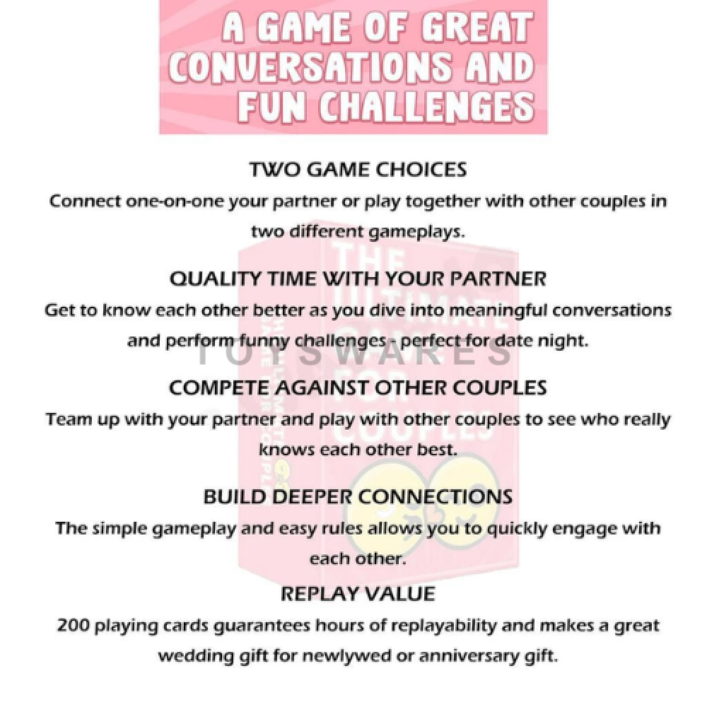 Quality Time with Your Partner: Dive into meaningful conversations and hilarious challenges that help you get to know each other better—perfect for date nights.