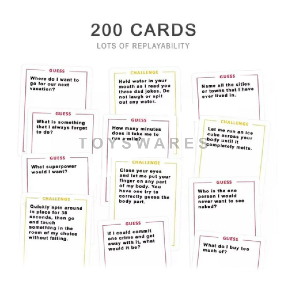Hours of Fun & Replayability: With 200 playing cards, the game offers endless entertainment. Ideal as a gift for him or her, or for weddings, newlyweds, and anniversaries.